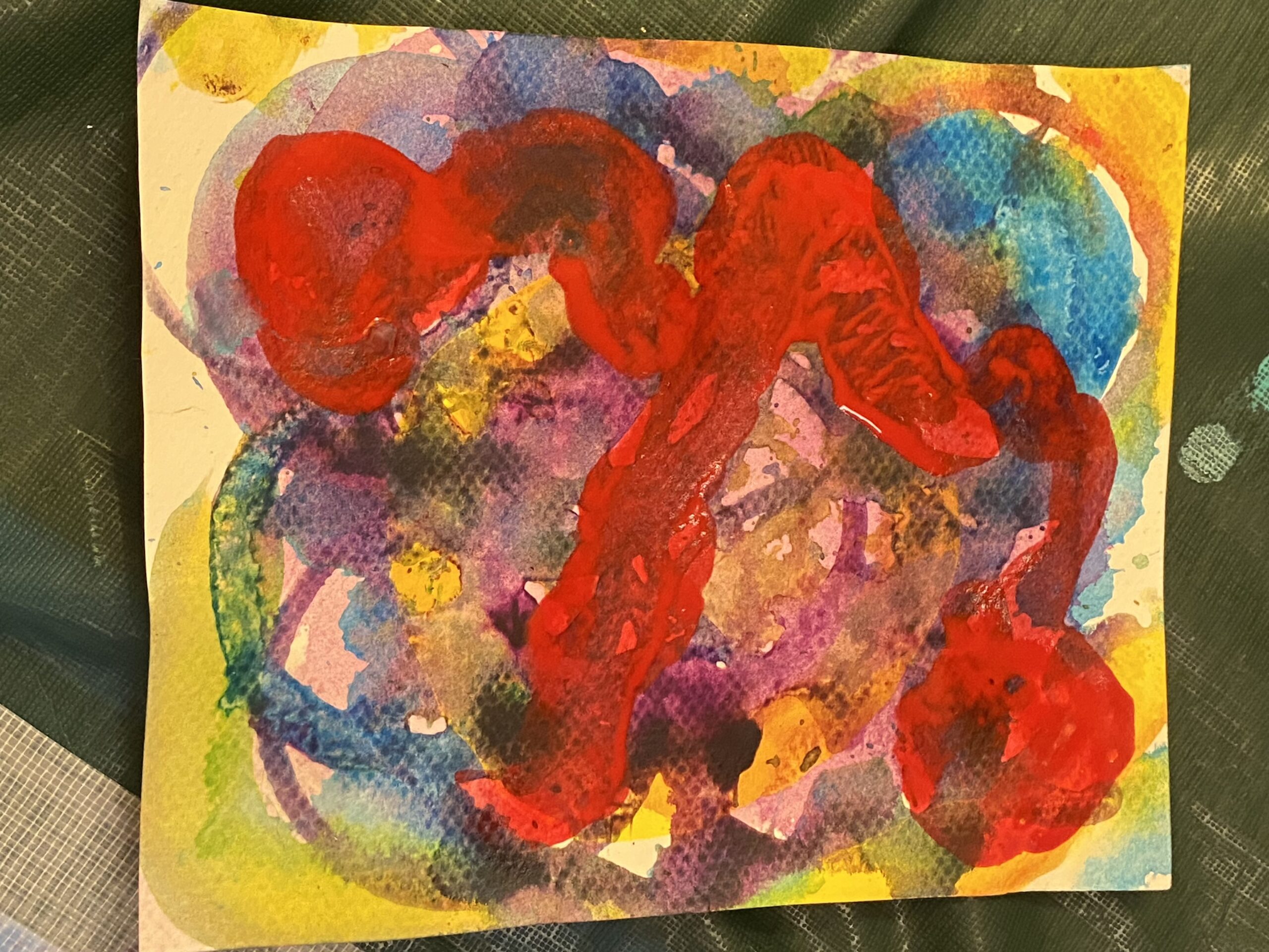 画材はアクリル絵の具とクレパスとえんぴつです。